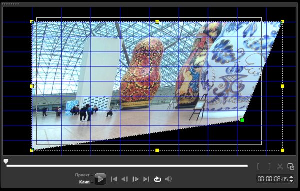 Кроме того, есть возможность с помощью мышки и сетки в окне предварительного просмотра деформировать геометрию видео самым неожиданным образом.